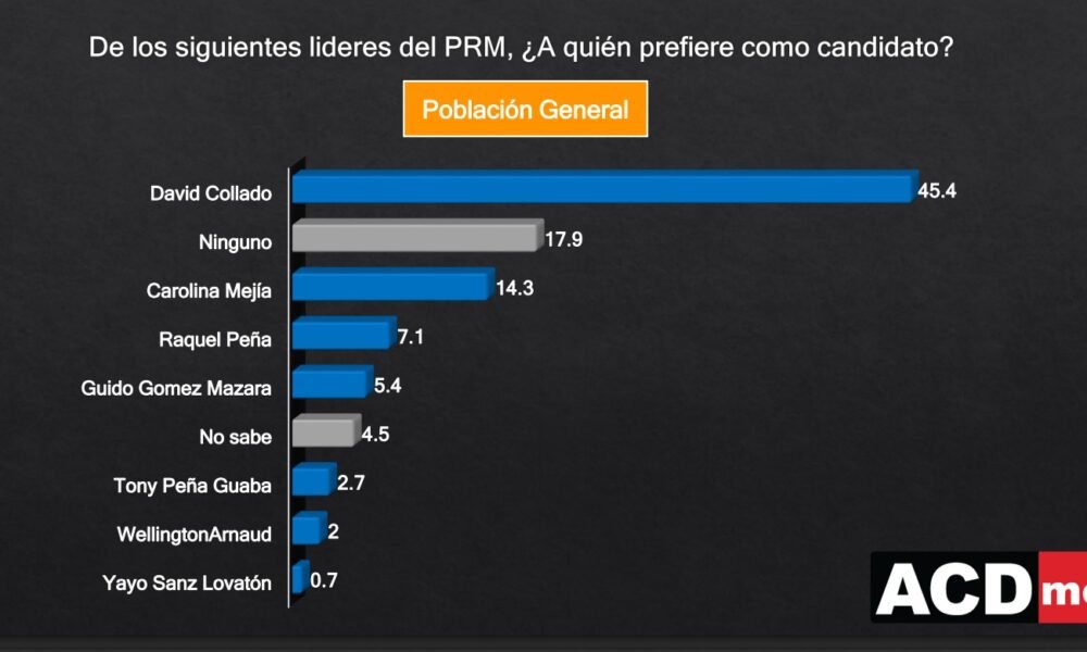 Santo Domingo, RD.- David Collado, ministro de Turismo, se encuentra entre los directivos del Partido Revolucionario Moderno (PRM) que generan el mayor apoyo para ser el...