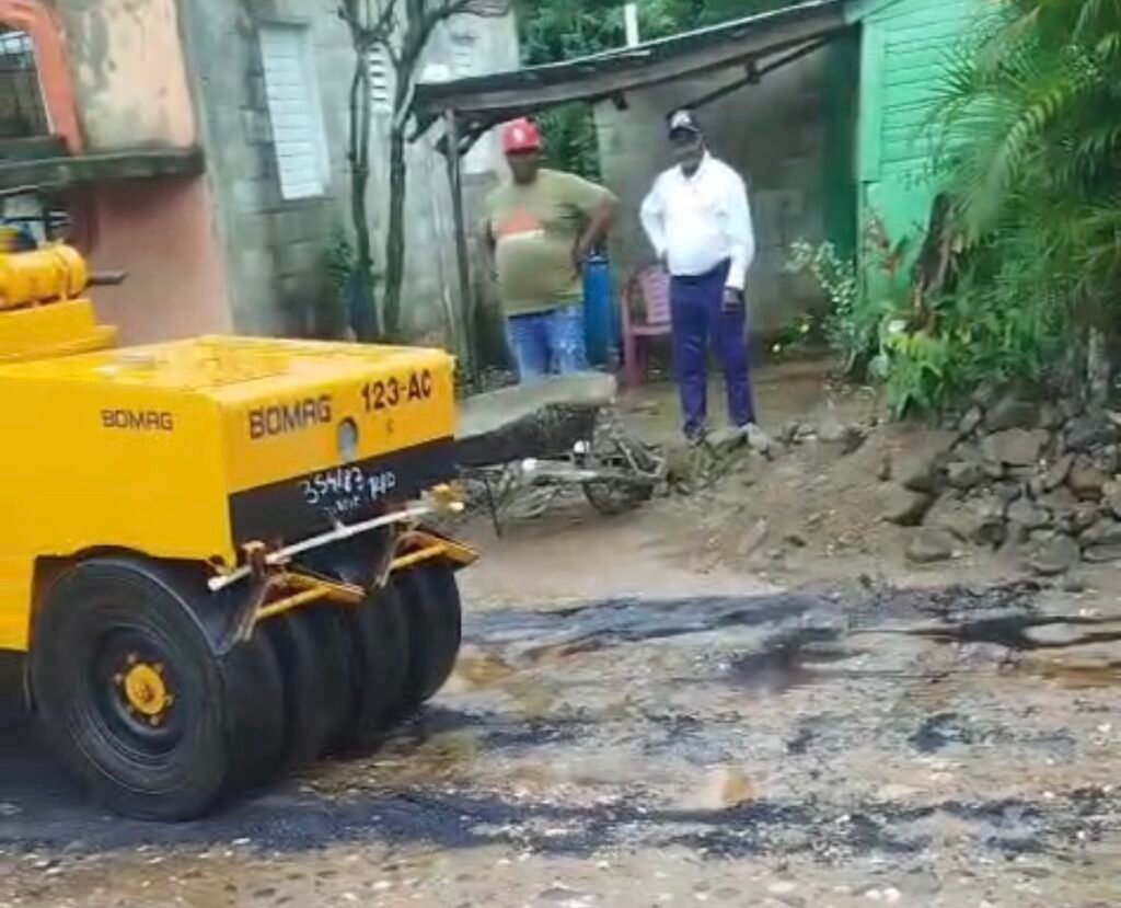 En la Pared de Haina realizan operativo de asfalto con las vías encharcadas y lodazal, lo que no garantiza un buen trabajo a largo plazo.